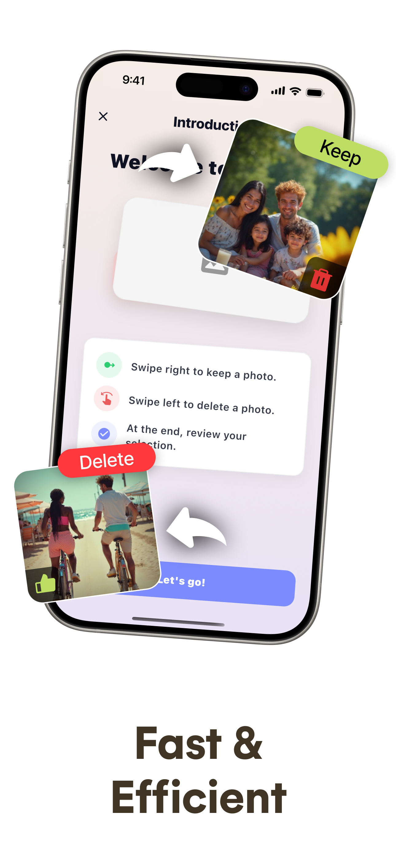 Just swipe left to delete, right to keep. No complex menus or confusing interfaces.